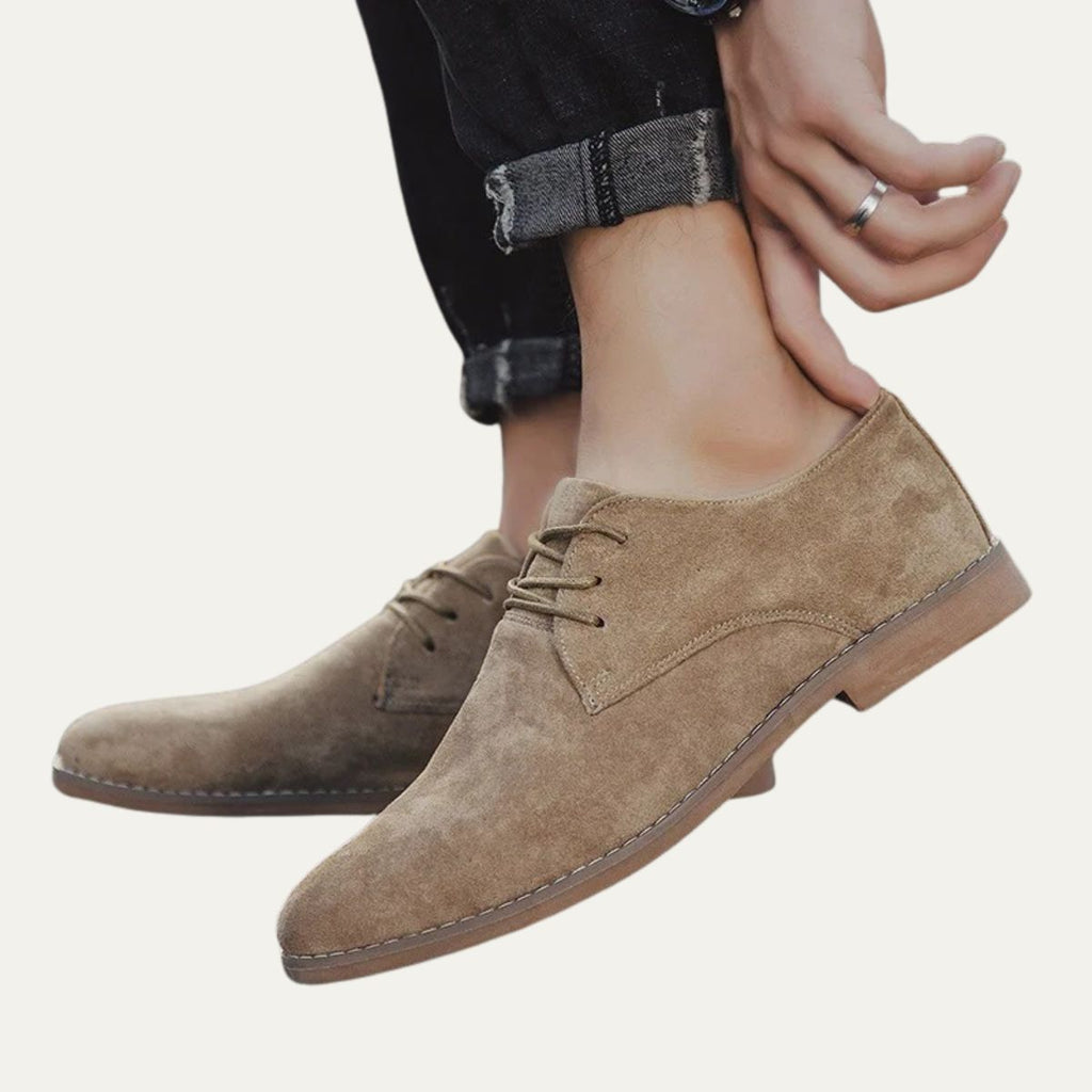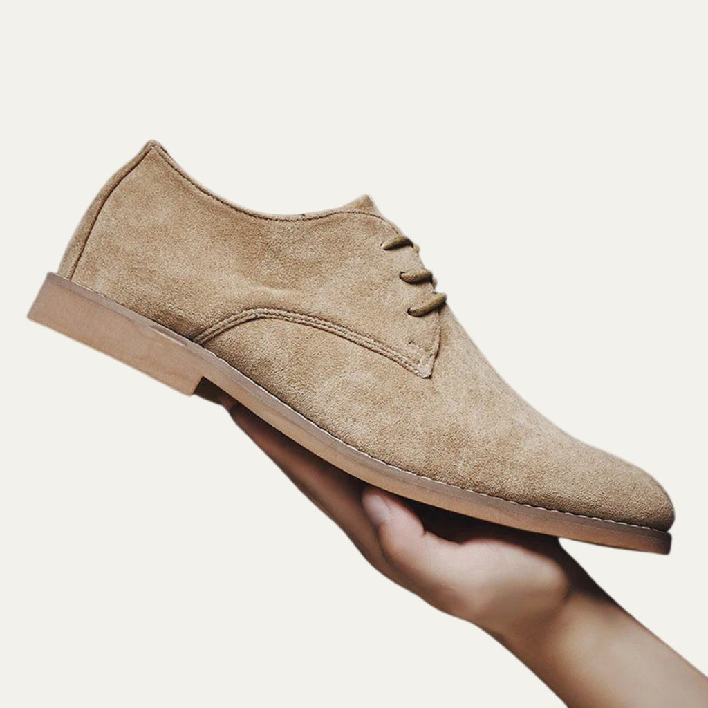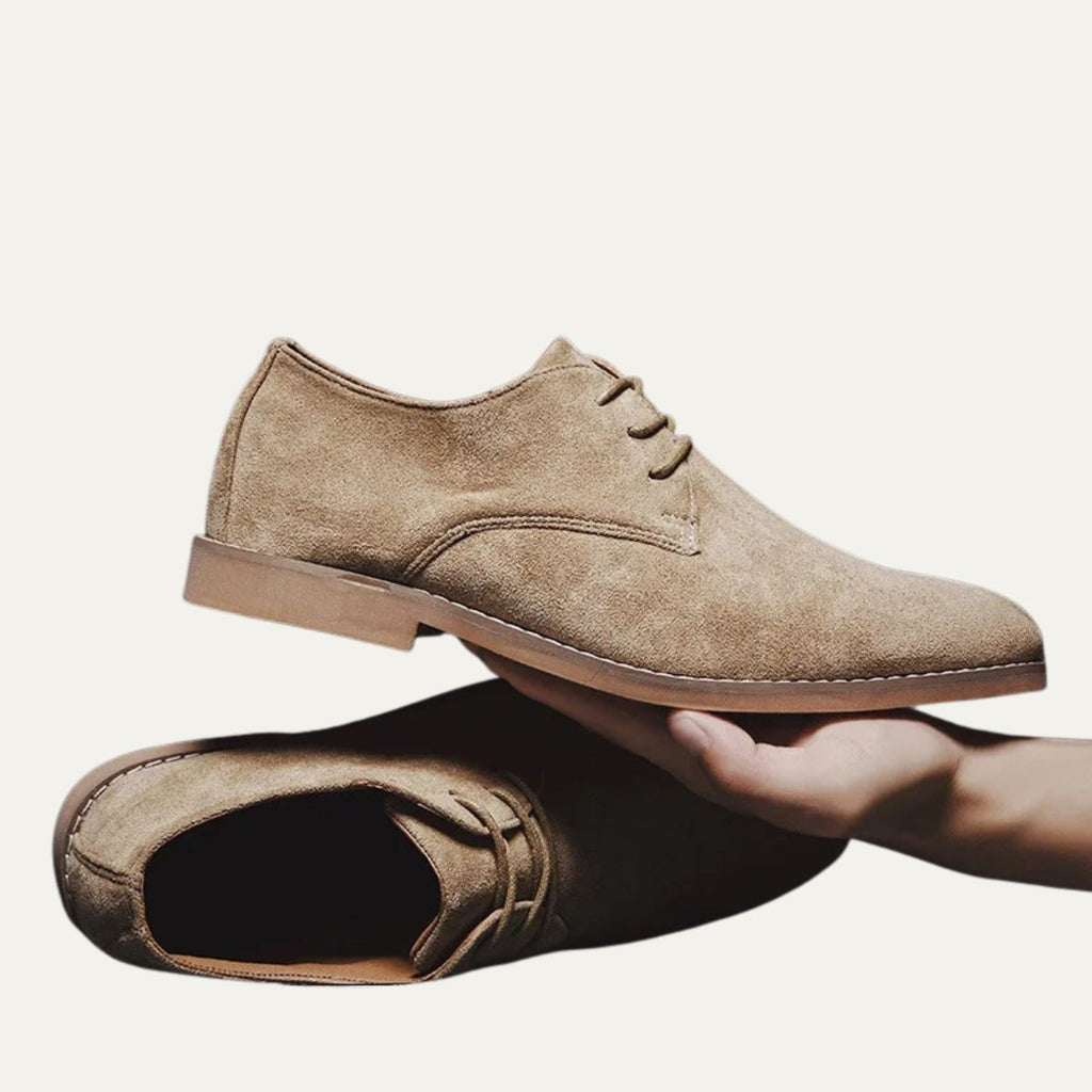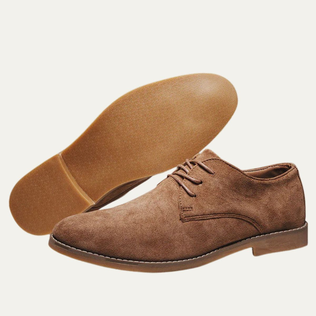 Timeless styling updated for everyday wear: a soft-textured upper with clean lines, a minimalist round toe, waxed laces, and subtle stitching create a neat, versatile profile. The design balances a refined look with casual ease.