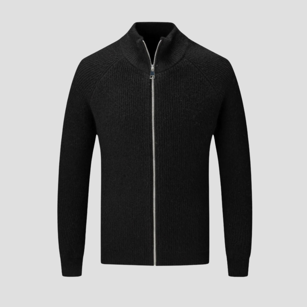 Baram – Men’s Zip-Up Ribbed Cardigan with Stand Collar | Zip-front