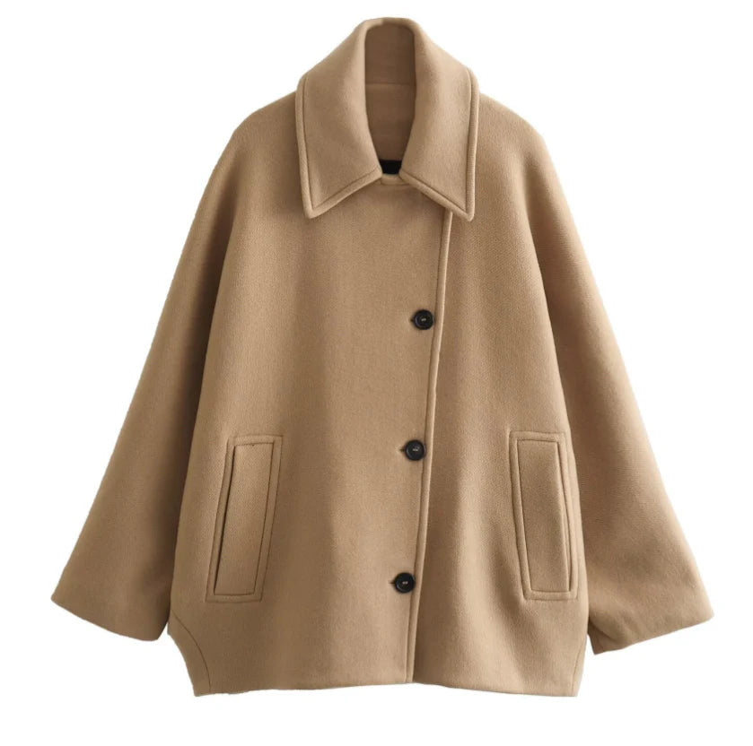 This oversized coat offers a clean, contemporary shape that works with both casual and more put-together outfits. The oversized silhouette gives room for layering while keeping a relaxed, modern look, and the design includes practical pockets for daily use.