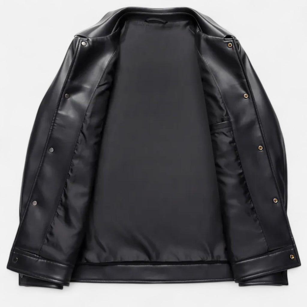 Blending classic craftsmanship with contemporary versatility, this jacket features a smooth exterior, a clean straight hem and a structured polo collar that together create a timeless silhouette.